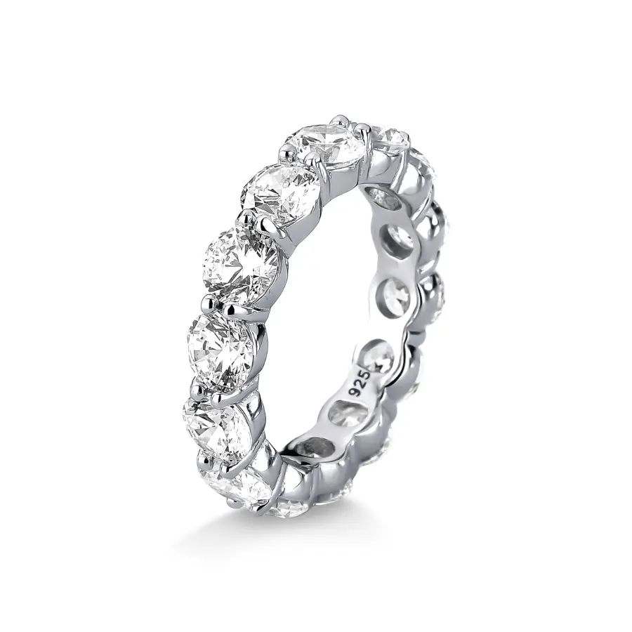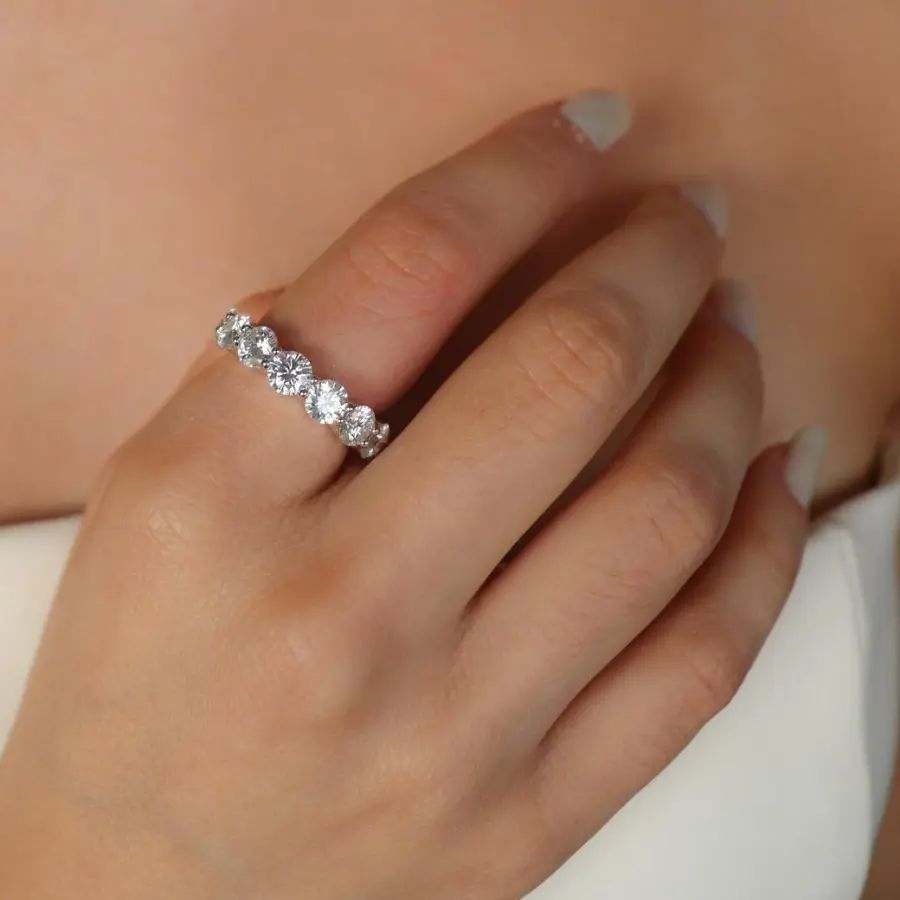 Anel aliança cravejada com Moissanites 5mm 0.5ct em prata com ródio.